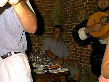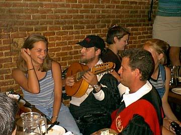 Our group now gathered in the entryway of the hotel and we were soon following Suzy through the winding streets to the Tapas Feast. This is a festive meal that is composed of appetizer sized portions, a very nice way to get a taste of several of the native dishes (no chicken - hooray). We also had live entertainment - troubadours. It was most festive, and I think this was our happiest meal together.