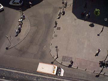 which was and still is a meeting place for the Spanish people, following Suzy into Madrid's typical maze of back streets. Suddenly Suzy took off at a run back up the hill. We asked the fellow who was following her what happened. He stood there looking bewildered and said - "I don't know - she just said "bugger, I've gone the wrong way" and took off."
