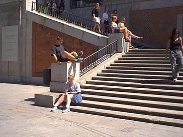 We changed into more appropriate clothing for the warm weather, picked up our passports, and went to a sandwich shop for lunch. Madrid has the most stunning transvestites, and we were given a close up view when one sat down at the table next to us. We noticed that the women's shoes in the clothing stores all came in huge sizes - must be to accommodate the changelings in their society. I wouldn't have been so miffed, but they all had a better figures than I do.