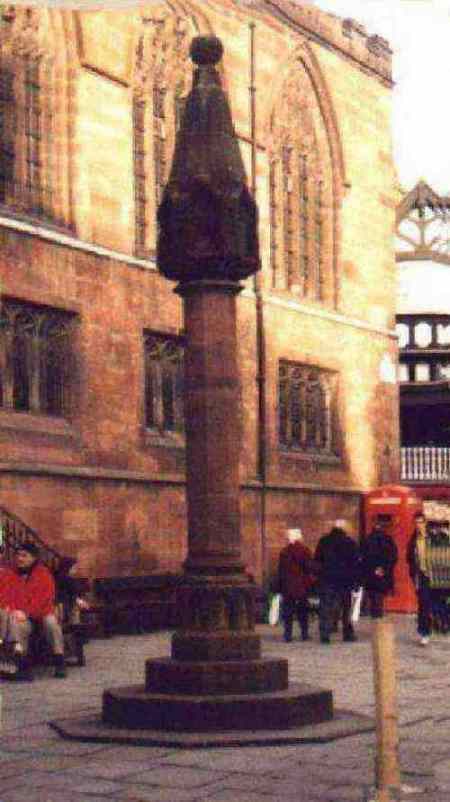 kept in the Roman gardens, until restored in 1975. The medieval high cross is made of sand stone with a lantern head in the style of the thirteenth century , here marked the place where bargains were sealed by the merchants of the city . It was also the original site of the stocks and pillories . A popular sport of that time was bear - baiting which was to continue up to 1810 , from here the town crier makes the public announcements of the day (Dodgson 1981, 12; Chester R. O., CHD 2.1 ) The Cross 1350 - 1407 By the mid - fourteenth century the area immediately to the south of St. Peters church contained the city's high cross and pillory evidence at this time it had the character of the public market . From time immemorial produce and dairy products were sold a little to the east, in the broad western end of Eastgare Street and by the sixteenth century that area was also the site of the ' milk stoups ', it indicates that it was originally part of the early market place in front of St. Peter's (Groombridge 1956, 125 Hemingway 1831, 2 15-16 Mitchell 1974 , 158 ; Morris 1894 69, 295-6 ) |