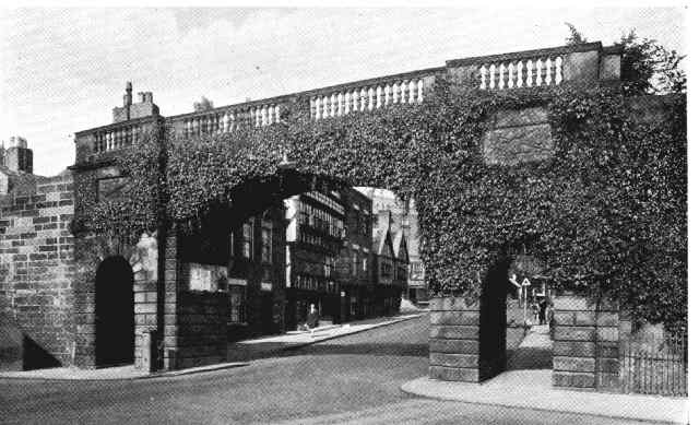 The Bridge gate seen here was built by the city fathers in 1782 to replace an older gate which was arched. There was a squat round tower at either end of the old Dee Bridge.