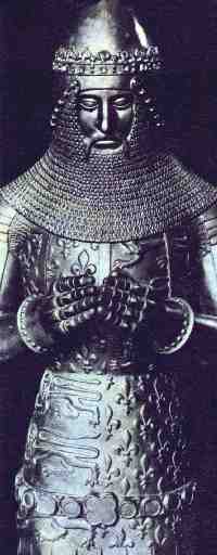 | The effigy which he instructed to be made and placed in Canterbury Cathedral, "an image ... in memory of us, fully armed in our armour, with our arms quartered. our face revealed, and our leopard helm placed above the image", has doubtless contributed, towards his posthumous fame. | He had been trained in deeds of arms, but he was not a fully-fledged knight, because, as yet, he had not proved his courage in battle.. |