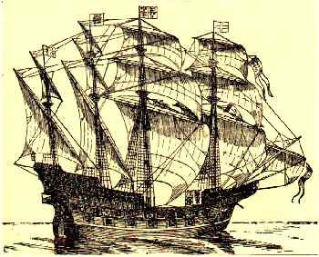 for £5000. Her tonnage was 800, and crew 400; Her hull was still on galley lines, there is, starting from the bows, first the forecastle, then the waist of the ship; of the remaining part, the first half was called the half-deck, the nest portion the quarter-deck, because it occupied roughly one-quarter of the space, the remaining portion aft was the poop.The rig is the same as that described for the galleon, only the mizzens are more liberally provided with lateen sails. It was Raleigh's intention to command the new ship but the Queen refused to sanction this and the expedition sailed without him. The Ark Royal began a famous naval tradition. |