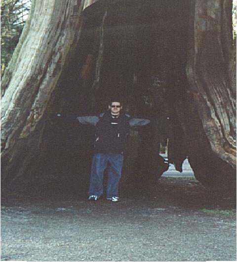 This tree is about 600 years old and was roughly 500 feet tall. It's all been hallowed out now & only about 50 feet remain. As you can see, it's pretty clear that I'm dwarfed by it's amazing size! IT'S HUGE!!!