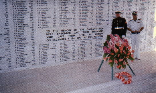 The wrecked battleship's hull remained where she sank, a tomb for many of those lost with her. In 1950, she began to be used as a site for memorial ceremonies. In the early 1960s a handsome memorial structure was constructed over her amidships. This USS Arizona Memorial, operated by the National Park Service, is a permanent shrine to those Americans who lost their lives in the attack on Pearl Harbor and in the great Pacific War that began on 7 December 1941 on a Sunday morning just a few minutes before 0800.