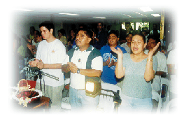 reuniones alabamos a Dios con alegría, aplausos e instrumentos musicales.