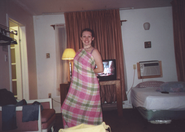 ...the car in the ditch...heather chilling in the car, waiting for the tow truck and the police...in the ditch, then us at our shitty motel...cold and wet with no change of clothes...and really ugly blankets with holes in them.