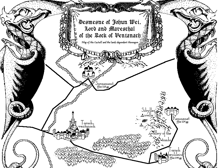 Ventner's Crag is a high, isolated rock tower on the southern borders of Na Féile, near the area known as the Mist Marches. In the last days of the Atalantean successor Kingdoms, this rock was fortified by Sialic tribesmen who had been part of one of the client tribes of the Principality of Mohomora. They had absorbed sufficient Atalantean culture to have become estranged from their old beliefs. With the collapse of the Principality of Mohomora, the lords of the castle became local rulers and eventually merged their religion with that of the barbaric Sialic tribes who migrated into the area. Eventually, the castle became home to a warrior cult to the God/Demon Ventanach Cruach (Lord of the Sky). Throughout all this time, the castle was gradually enlarged, and the tunnels under it extended. A substantial town grew up at the foot of the crag. Eventually, the town and castle were absorbed into the kingdom of Enneasis, and when the Medarian religion swept the Middle kingdoms, Enneasis was the last to submit. The castle atop the rock known then as Tarach Ventanach was destroyed by the fearful sorcerors of the Medarians - leaving the top of the crag a puddle of molten rock. The cult of Ventanach perished, as did the majority of the population of the surrounding area. For generations afterward, the crag and surrounding area was regarded as a place of ill-omen and avoided. That distaste passed on to the Eochail who eventually occupied the area, until finally even that was forgotten. The crag is now just a local landmark, but its tunnels survive, untouched for over 2000 years............