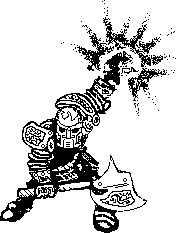 All Sun knights carry at least one normal weapon in addition to their magical one and have a 50 % chance of carrying some close quarters missile weapon (darts, daggers etc). All have a medium shield, emblazoned with the sun in glory - (gold or gold-washed). Since they are dressed for battle, they carry little else - some personal jewellery (d100 - 30 for Gp value) and perhaps a small pouch with some charms, a few papers etc).