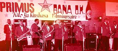 Under the leadership of Lutumba Simmarro, Bana OK have are still going strong. Among the CDs they have released include Tonerre show which was collaboration with Pepe Kalle and Trahison which featured vocals by Koffi Olomide. More recently they have released CDs such as Toucher Jouer and Dernier,Avertissement(last warning) which features a shorter, faster rendition of Josky's 1979 mega-hit Propetaire. If I were to vote for the song of the year 1999, The track Wany by Simmarro in that album would win hands down. The song features excellent vocals by Opetum , Shakembo and Serge Kiambukuta , augmented by outstanding guitar stringing by Simmarro and Gerry. Solo guitarist, Gerry Dialungana has ably taken over Franco's position as lead guitarist. New recruits to the band include Makosso and Shakembo whose silken voice is reminiscent of the Late Djo Mpoyi. While still remaining faithful to the Rhumba Odemba originated by Franco , Bana OK have switched from the traditional intro-song-sebene format to a single speed format , more in tune with the times. Their latest album is labeled Ingratitude