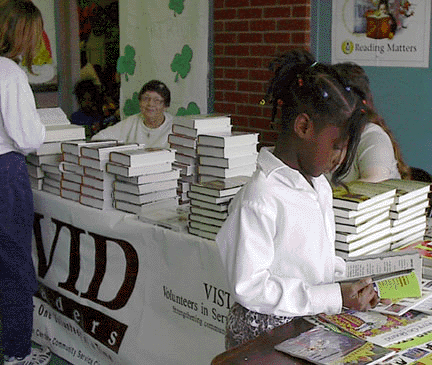 VISTA, Kathy Leach, coordinates a book giveaway as