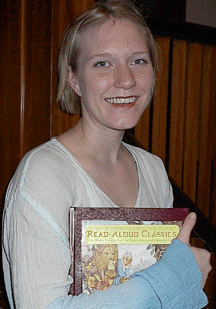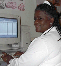 VISTA's Beth Wild reads a favorite while Ruth Scott makes time for data entry at the AVID office.