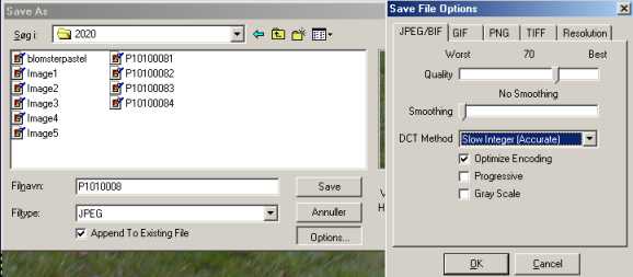 here you get to chose options , set quality to 70 and smoothing to none ,