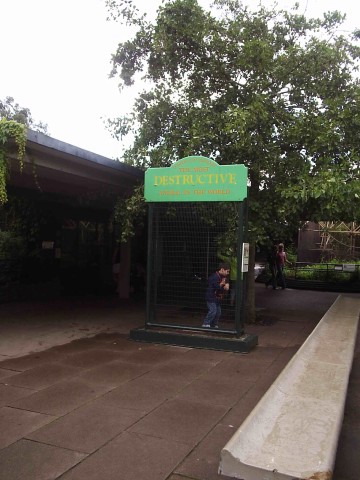 In case it's not clear, the sign above the cage here says "The most destructive animal in the world." It's the human exhibit.