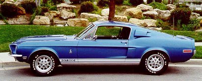 1968 was the first year of the convertible for the Shelby Mustang. 1968 also saw the introduction of the GT500KR, which meant 'King of the road'; a moniker borrowed from a popular song of the day. The KR Shelbys also recieved a new-for-'68 428 Cobra Jet. Rather than the 428 Police Interceptor installed in other GT500's.