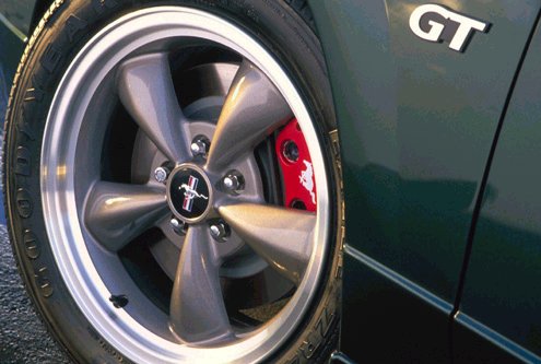 New for 2001, Ford created the Bullitt Mustang GT, with aluminum racing pedals, special gauges, and wheels that are reminiscent of the Torq Thrust D wheels on Steve McQueen's '68 Mustang GT Fastback.