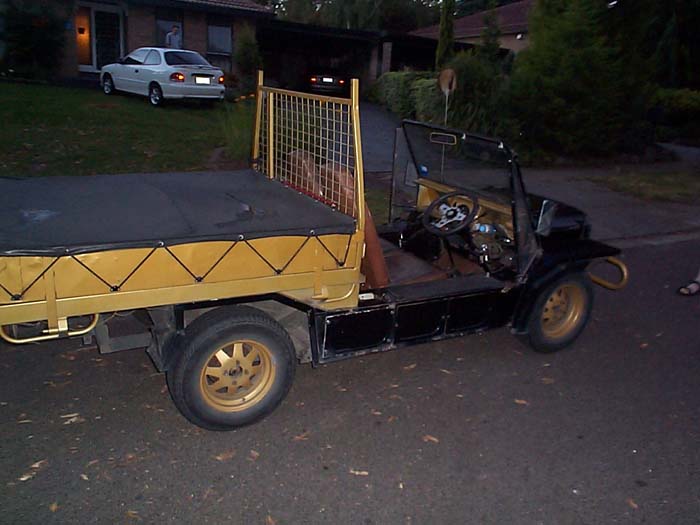 | This is my Moke, it's an Aussie built '77 model ute. Alot of work has been done over the last few months. In preparation for the Minishow 2001 held at the Melboune Show Ground on July14 a fully polished aluminium tray has been fitted. Thanks Dico and Autotray. Offers over $5000 welcome. Original tray 4 sale $400. |