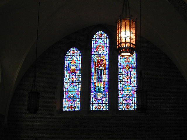 Some of the beautiful stained glass in St. Gregory's Abbey Chapel