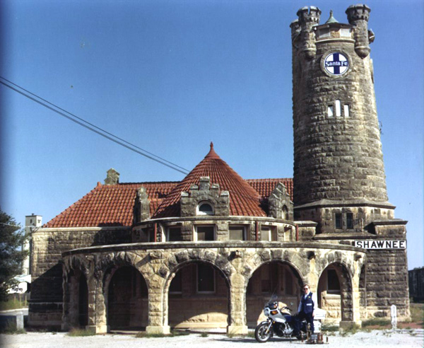 This is my 1978 GL1000 in front of the Old Santa Fe Depot in Shawnee, as you can see it is a rather unique building, listed on the National Register of Historic Places. The photo dates to about 1980.