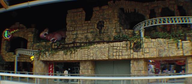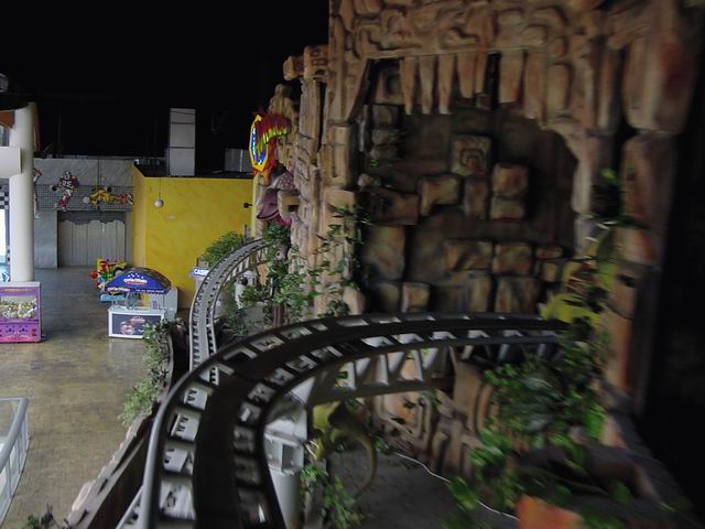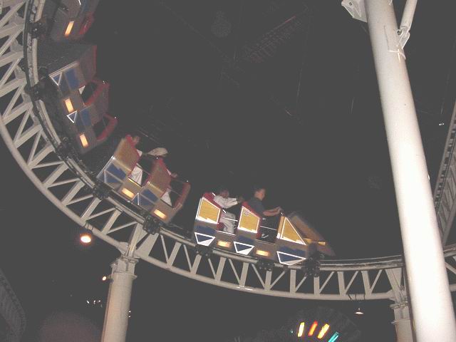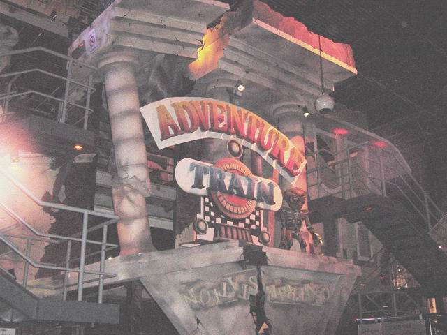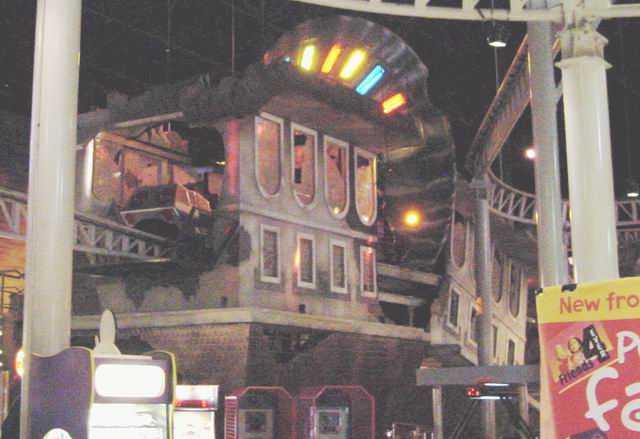 A shot of the rather unique station that houses the roller coaster, Quantum leap and Adventure Train. |