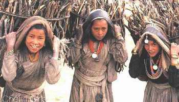 De onderste verdieping van de woningen is bestemd voor het vee. De woonvertrekken liggen helemaal bovenaan, meestal is dit de derde verdieping. De deuren en ramen zijn bijna allemaal kunstzinnig bewerkt, de bevolking hier staat beroemd om haar houtsnijkunst. Hele gezinnen zitten buiten op de stoep of op de grond van hun erf typische boerenbezigheden uit te voeren.
