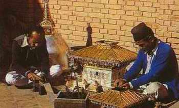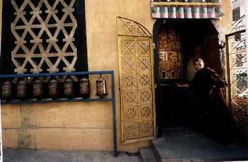 Genoeg interessants te zienKirtipur heeft verschillende bezienswaardigheden, zoals een stoepa, een Vishnu - tempel met een fraai uitzicht over het dal en een fonkelnieuwe Thaise Boeddha - tempel, geschonken door Bhumipol, de huidige koning van "Siam". Het meest interessante vind ik echter de manier waarop het dagelijkse leven van de autochtone bevolking zich voor onze westerse ogen ontrolt. Praktisch alle activiteiten zijn er gericht op landbouw, indirect dus op brood op de plank. Het zijn hoge huizen, dicht op elkaar gebouwd en bestaande uit leem en stenen. Hiernaast kijken drie generaties Nepalezen me uitdrukkingsloos aan wanneer ik een foto maak van een opmerkelijke klok in een van hun talloze tempels.
