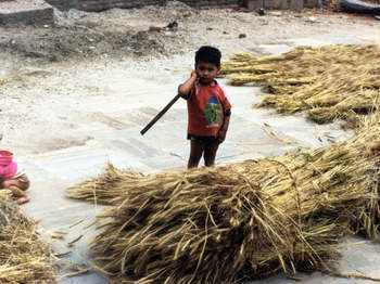 Tussen al die bedrijvigheid door loopt gezellig het vee te scharrelen. Elk dorp heeft zijn eigen specialiteit. In sommige dorpen wordt wèl, in andere dorpen weer helemaal nièt door de kinderen gebedeld. Ik de"ï afhankelijk is van de mate waarin toeristen zich hier vertoond hebben. Waar veel toeristen zijn wordt ook veel gebedeld, dat is een ijzeren wet die overal in de wereld geldig is.