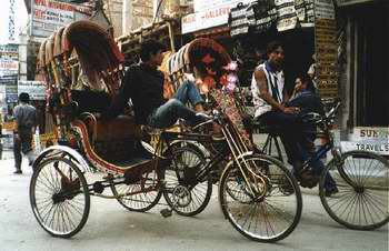 staan altijd wachtende fietsriksja's geparkeerd. Die fietsriksja's zijn in mijn