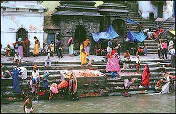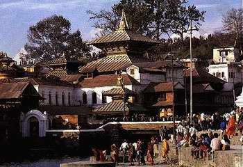 tempel van Pashupathinath in het oosten van de stad brengen. Het verkeer is