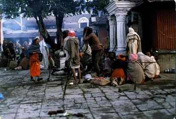 onderdak hebben gevonden in de tempel. Ze kruipen net verkleumd uit hun haveloze