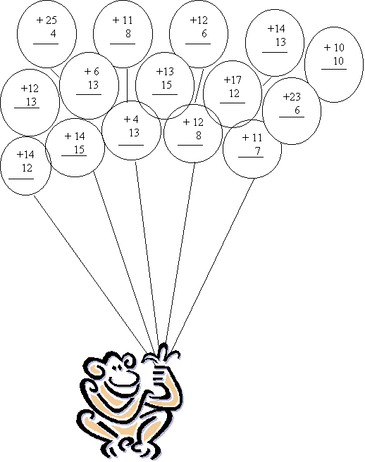 Busca los sumandos que tienen como resultado la suma de cada globo.