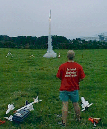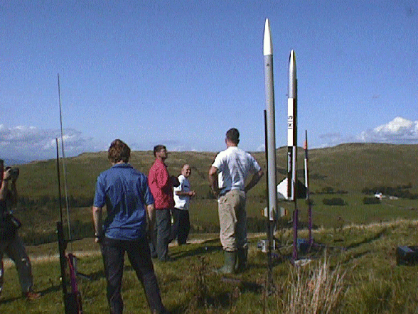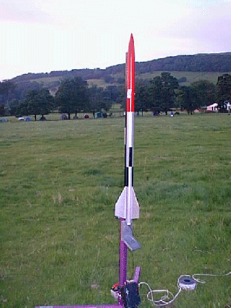 Time again disappeared and the IRW was here. Each year we say that we must allow plenty of time to get ready and develop something new for the event. But every year we run out of time. Sean had managed to complete his larger upscale Estes Thunderhawk for UKRA2001 but did not fly it. I myself did not have much time to complete any new projects or repair the large Delta Clipper form last years event. This was mainly due to building my new garage, which is at issue of this report (Sept 2001) almost complete. I did however manage to complete a small stumpy rocket with an active roll control system and my first boost glider (Vaun Brothers Buzzard) that I hoped to enter into the competitions later in the week.