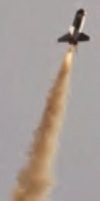 Above are some frame grabbed images of the in flight video. You can see the shadow of the smoke trail on the ground in the lower two images with the spectators to the right of it.