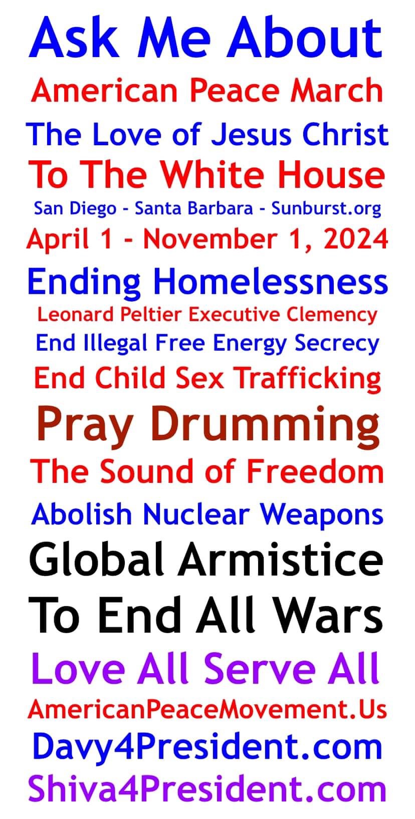 To Understand How the American Peace March will end Homelessness in America by stimulating the Sai Baba values of "Love All Serve All, that's the way to be Loved by All" -