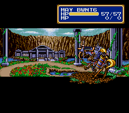 Give Mae (from Shining Force 1) a makeover, a bow and reduce her defense to peasant-level and you've got...May. Well, actually she's just a wandering centaur longing for adventure. She is an optional character, but only the biggest klutzes can't find her. She is the only centaur with a bow (she's also the only female centaur) and arrow. Like all centaurs, she too has trouble moving through the dense forest and the desert. May is on of the weaker characters, but I find her fun to play, so she seldom lands into my Caravan. If you want a strong party, go for the brass gunner(s) instead, because she hardly improves as she gains levels.