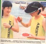 photo: Dickson Lee Marking their mark... members of the Hong Kong Institute of Architects team prepare for the fancy dress Dragon Boat race at Stanley beach yesterday. |