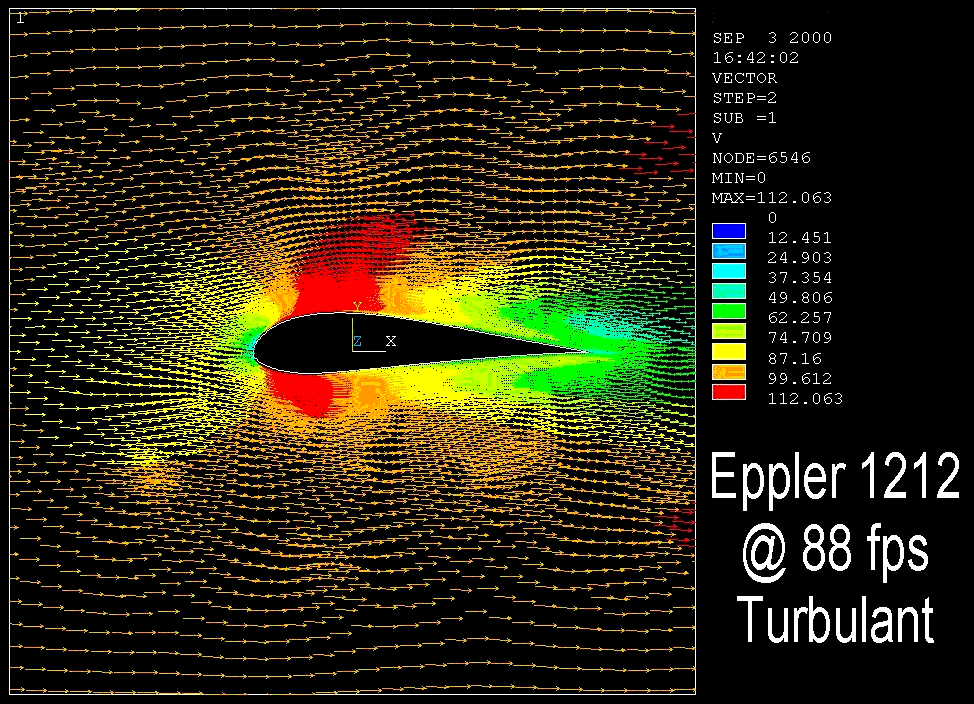 how a turbulent airfoil design (Eppler 1212) handles the air. The overall