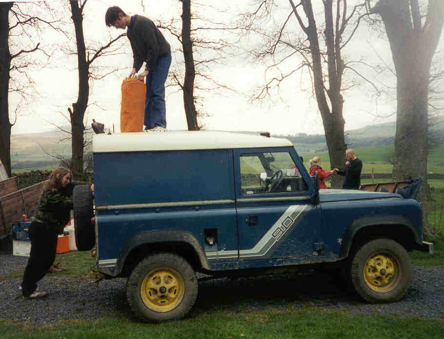 | The group on top of Pen-y-ghent | Trying to load more stuff into John's Landrover |