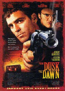 His next script, "From Dusk Till Dawn", was written based on a friend's story idea. He wrote it as a favour to his friend Robert Rodriguez, who directed the film. It's a fairly simple story really, about how a group of people have to fight for their lives in a bar filled with vampires 'from dusk till dawn'. Simple it may be, but read and see how Tarantino spiced the script up with his usual flair and silver-tongued dialogue. The film starred George Clooney, Tarantino himself, Harvey Kietel (he gets around, doesn't he?) and Juliette Lewis. It, too, achieved cult status. The rather small but still very cool-looking .gif movie poster is available here.