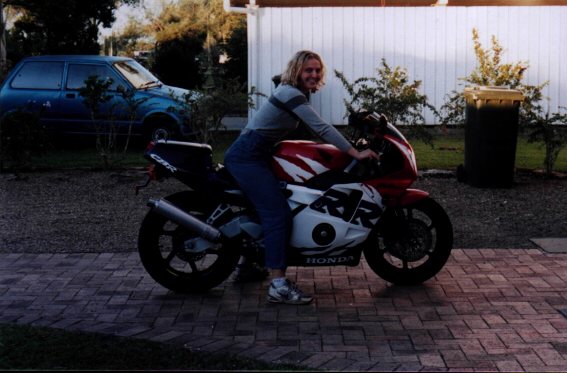 Buying your first bike is never a easy choice, especially in todays market where there is so many quality bikes to choose from. But a good many riders are heading towards the mini 'Blades because of their sporty perfromance and good looks. The bike below is owned by Kelly and although she has ridden bikes a lot bigger than this one before, Queensland law says that you must ride a 250 for the first year of holding a motocycle licence.