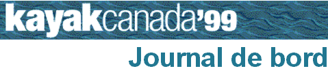 J'ai profité des vents calmes pour parcourir une bonne distance et bien apprécier le St.-Laurent. Au-delà de l'Île-aux-Coudres, l'eau est devenue plus limpide et salée. Les algues de toutes sortes commencent à être communes. J'ai eu l'occasion de voir plusieurs phoques, des rorquals et des bélugas, de même que des oiseaux marins. Malheureusement, je n'ai pas pu les identifier puisque j'ai oublié mon guide d'oiseaux. Je me suis rendu à Port-au-Persil (47o 48’N, 69o 54’O) vers dix sept heures alors qu'il faisait noir. J'ai demandé à plusieurs personnes si je pouvais camper sur leur pelouse mais ils ont refusé. A la place, ils m'ont dis de camper sur une petite île près de la côte. Plus facile de le dire que de le faire ! Tout un cauchemar de hisser mon kayak et mon équipement sur des falaises glissantes à marée basse. C'est la première fois que je ne suis pas bienvenu de camper dans un village. Ce n'est pas que les gens soient méchants ici. C'est plutôt que tellement de touristes visitent la région qu'ils ne font plus confiance aux étrangers.