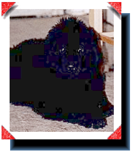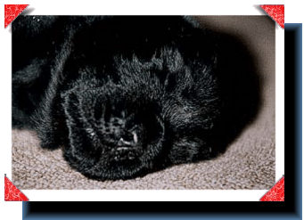 " I was born on August 8 1997. I guess I should give some credit to my breeders, Starr Willetts and Hannah Hayman and also thank them for chosing me such a nice mom and dad. My dad is Champion Boradaile's Black as Ever. Every one at Boradaile Kennels calls him Sever. My mom is Canadian Champion Ebunyzar's Goblyn CGC TDI better known as Boo. "