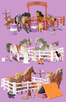 There were also three activity sets, featuring the "Equestrian Finals", "Mountain Adventure", and the "Rodeo Adventure". Each came with an action mini horse with tack and lots of accesories!