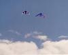 Same two kites, wider view. The background is Canada's capital, Ottawa.