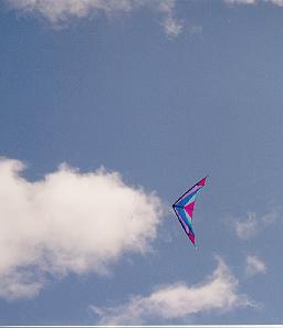 This is my largest kite at around 9 feet wide. It's an "Azur Freestyle". I use 115 foot, 200lb Spectra lines. Not a fast mover but the pull is out of this world.
