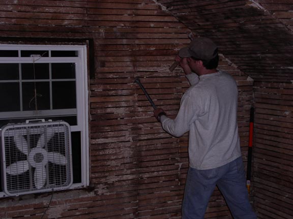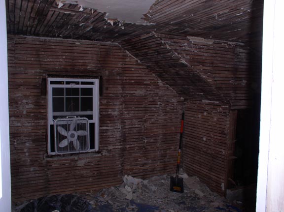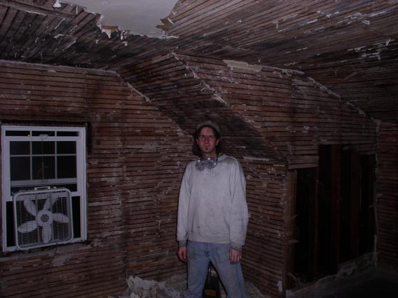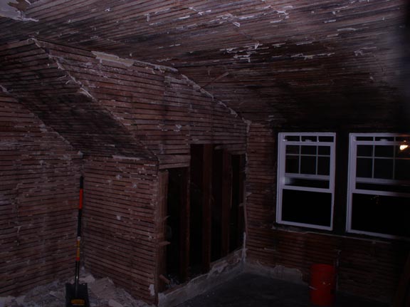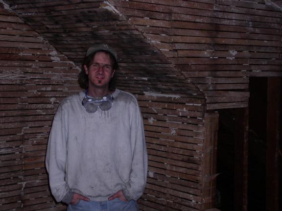 As you can see, he has a room who's interior walls were covered with the lovely plaster and lath finish!