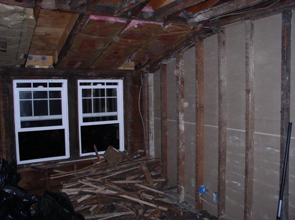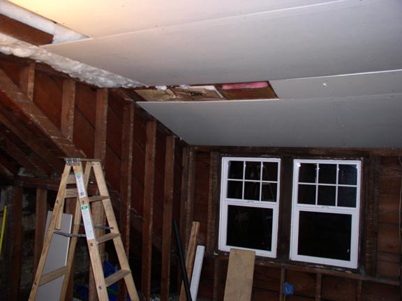 So we decided, hey, lets tear all that off, wire a few more recepticals, a light, some c5, insulate, and put a nice smooth drywall cover over it all