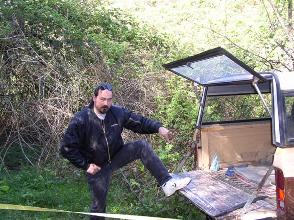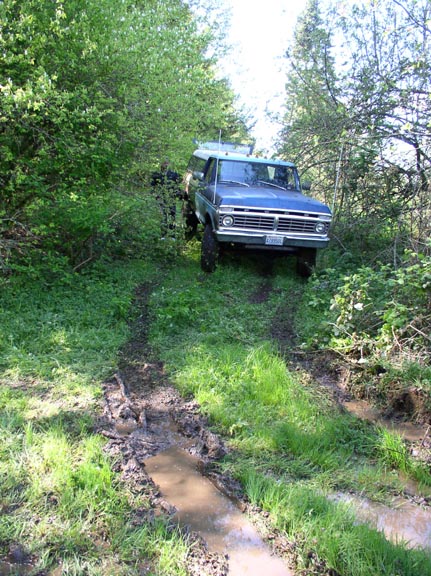 So Wayne and I are driving along, Wayne says hey, there’s a hill climb! So I turn around and say, hey, ya, there is a hill climb! I put Hurc in 4 low and up we go, didn’t even spin a tire. Then there wasn’t really a place to turn around, so we kept going. We came around to a down trail. Wayne says, looks a little wet down there. I agreed, then proceeded to drive right into the swamp! |