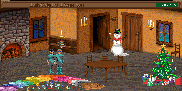 Alten and Sable in their aqua baldies with Christmas decorations (from the Realm)