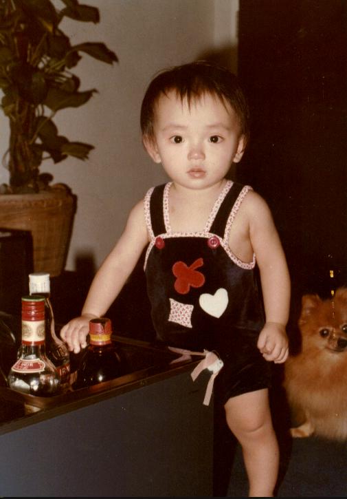 PHOTO 1:Yes, this is me!!! hahaha... Me, standing next to a coffee table with bottles of wine in it.. (weird coffee table, ah??).. I was looking around trying to see if any adults were watching on me....